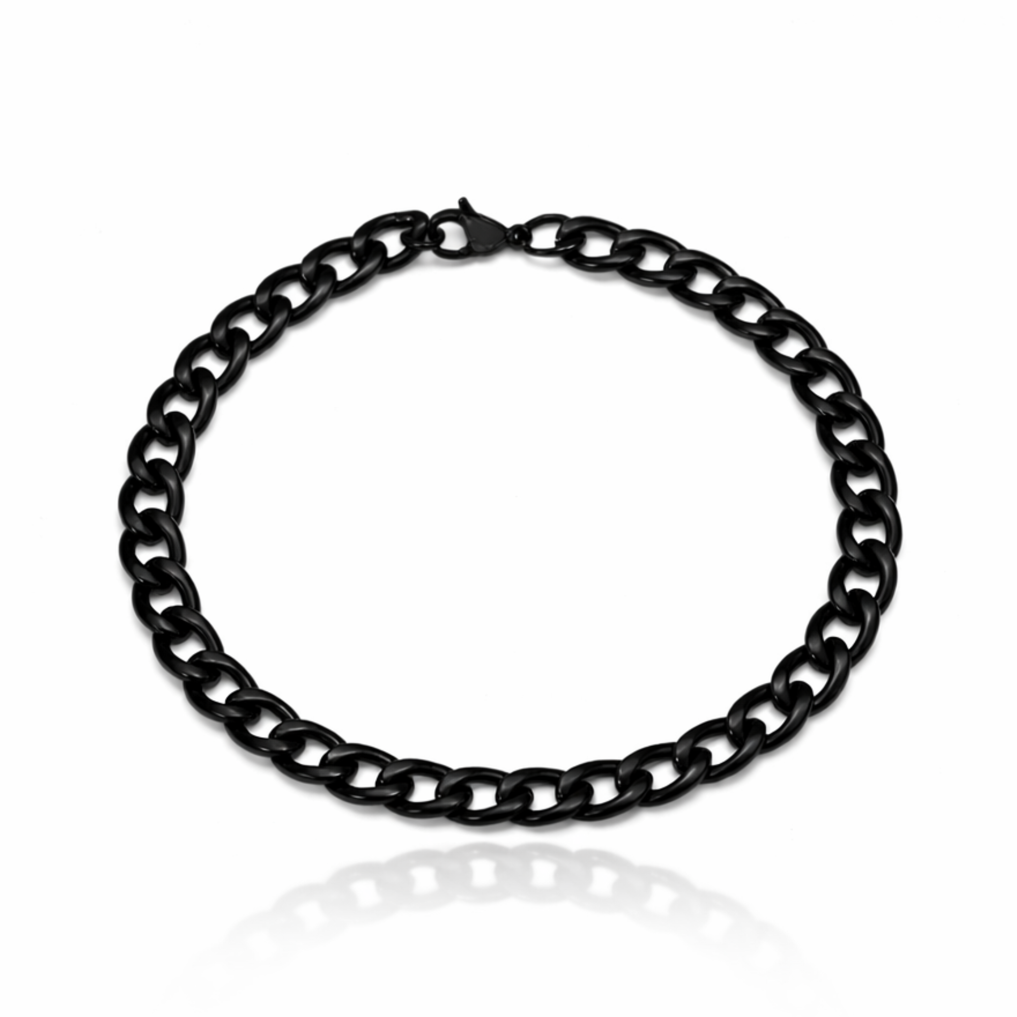 Keep it classic and clean with this 7mm Black Rhodium Plated Stainless Steel Cuban Bracelet. Designed with a bold Cuban link pattern and a smooth polished finish, this piece adds a strong, modern look that works on its own or stacked with other bracelets. Made from durable stainless steel with black rhodium plating, it’s built for everyday wear and finished with a secure lobster clasp for a confident fit.