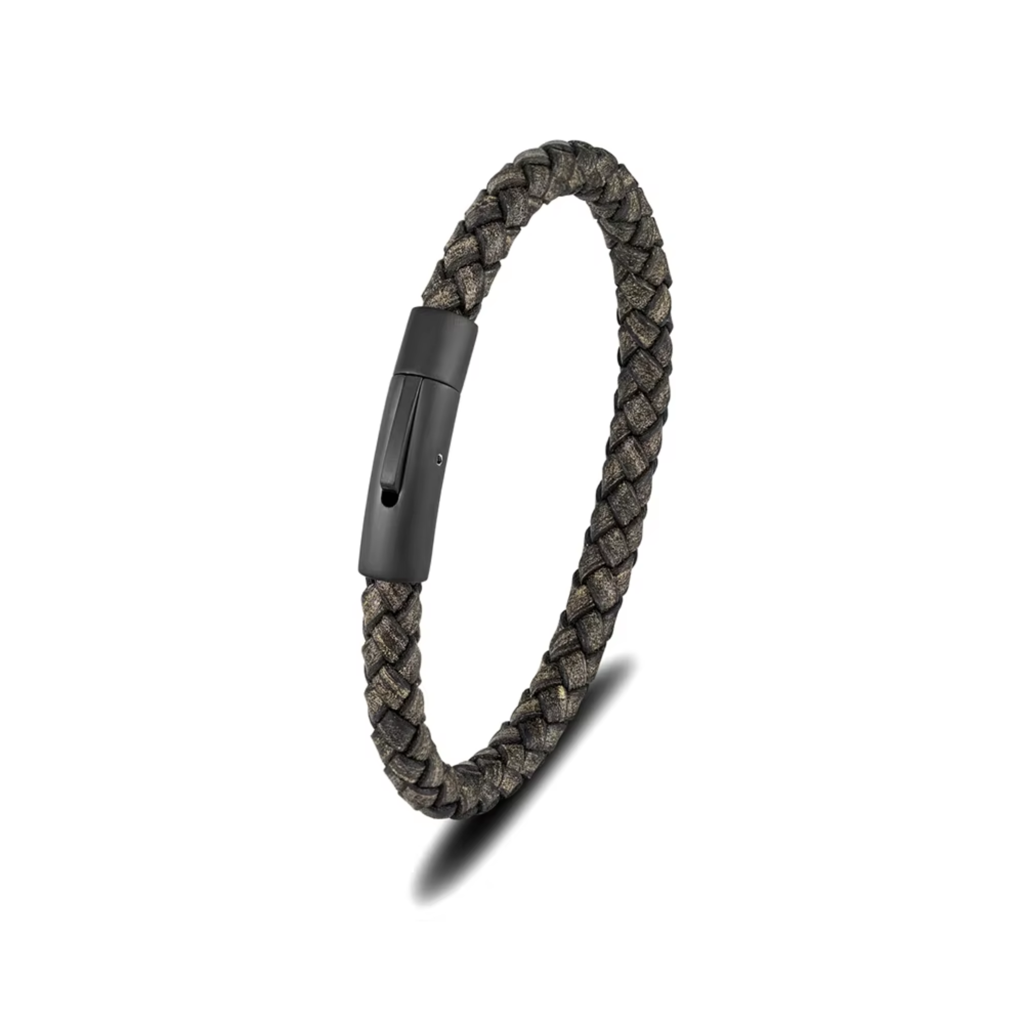The Brown Leather Bracelet With a Black Clasp delivers a bold, straightforward style made for everyday wear. The braided brown leather gives it a strong, textured look while maintaining flexibility and comfort on the wrist. Finished with a solid black clasp, the design feels modern and purposeful, offering a secure fit without distraction.