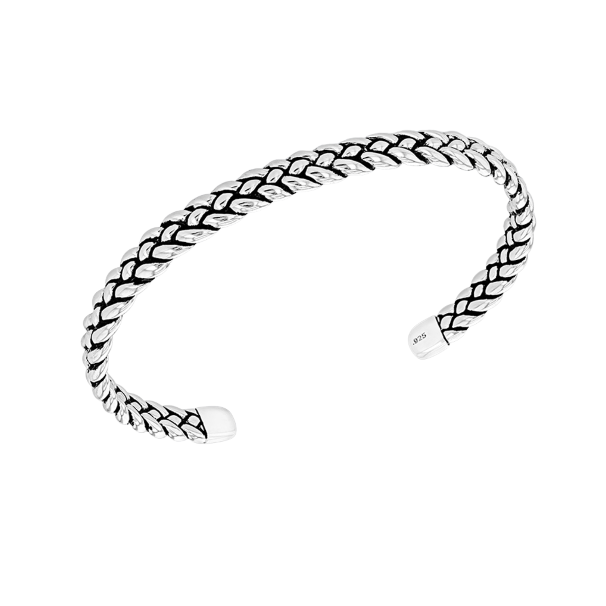 Men's Sterling Silver 7mm Oxidised Braided Cuff Bangle