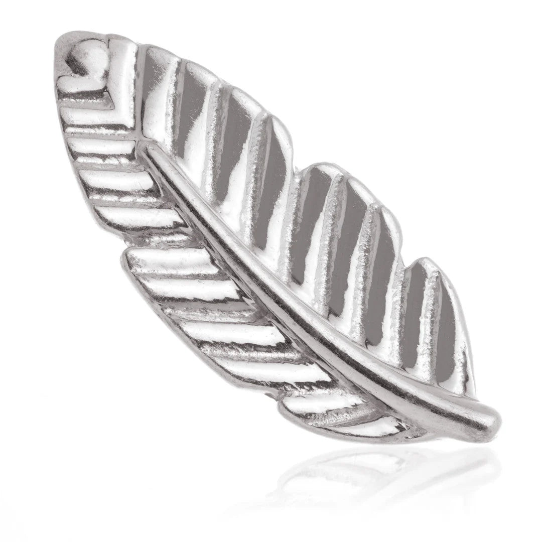Add a touch of whimsy to your look with this 14ct White Gold Feather stud! Designed with an internal thread and flat back, it ensures a comfy, secure fit while the hypoallergenic titanium flower labret base plate keeps sensitive ears happy. Perfect for everyday sparkle with a feather-light feel.
