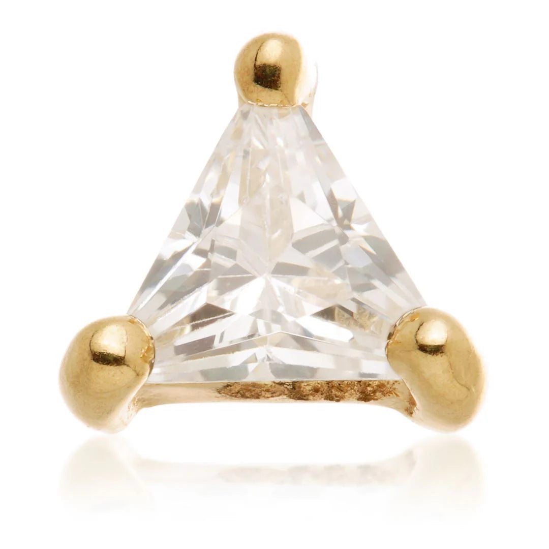 14ct Yellow Gold CZ Triangle Internal Thread Flat Back Stud