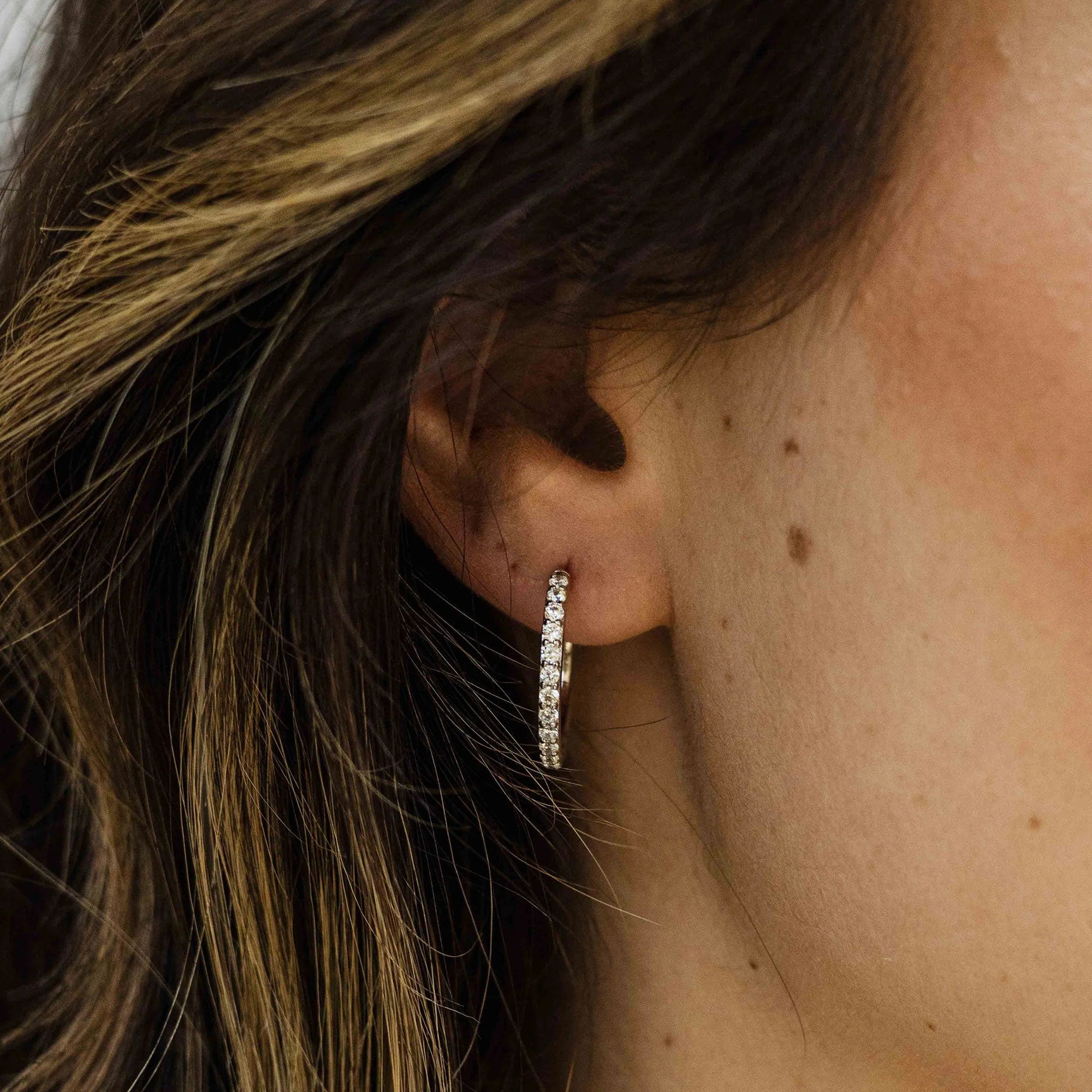 These luxurious Sparkling Large Hoop Earrings are certain to draw admiring glances with their shimmering stones encased in enchanting rhodium plated silver or gold plated silver hoops. Wear these earrings to make a lasting impression and add a touch of sparkle to your look.
