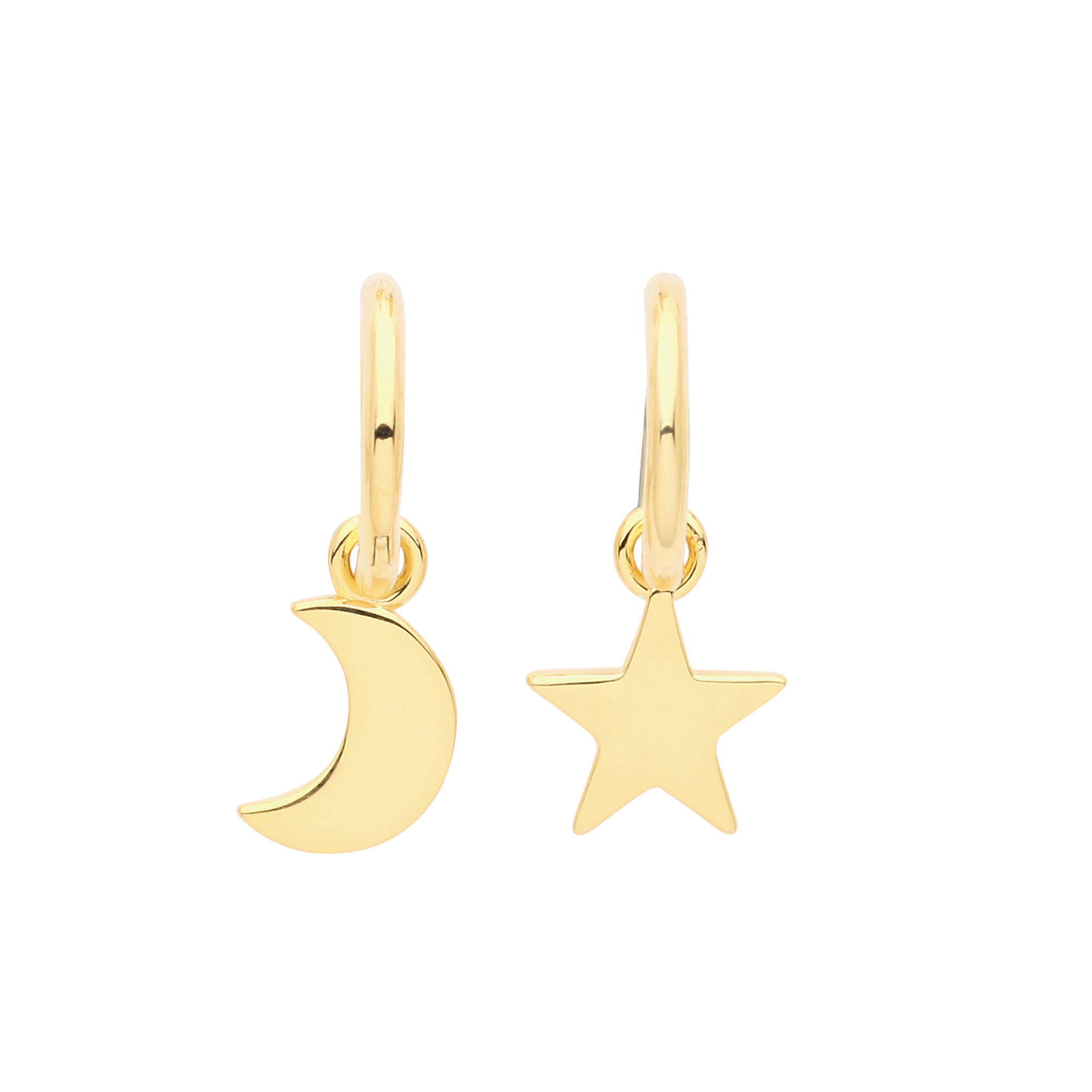 Gold Plated Silver Star & Moon Dainty Hoop Earrings
