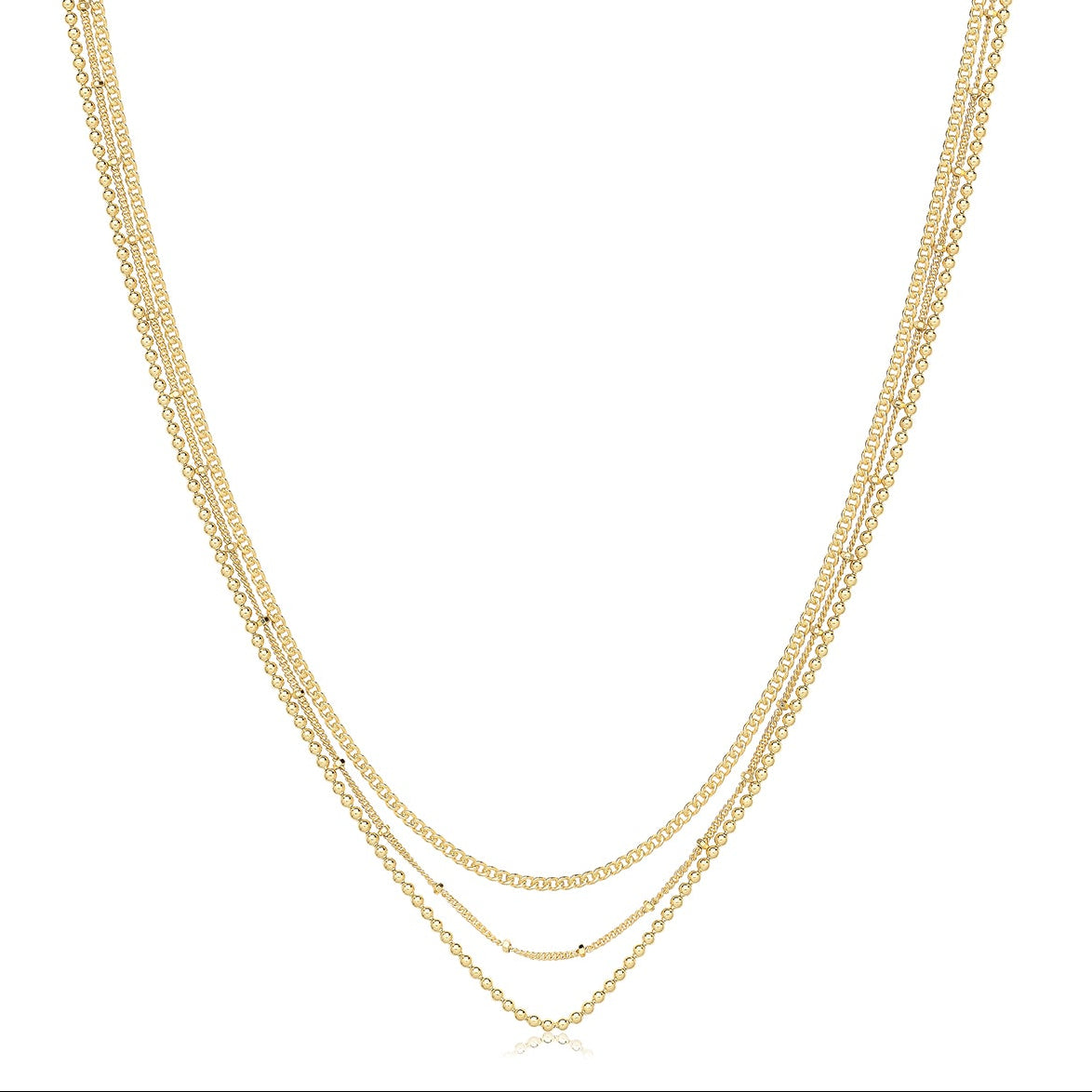 Gold Plated Silver Three-Row Multi Chain Necklace