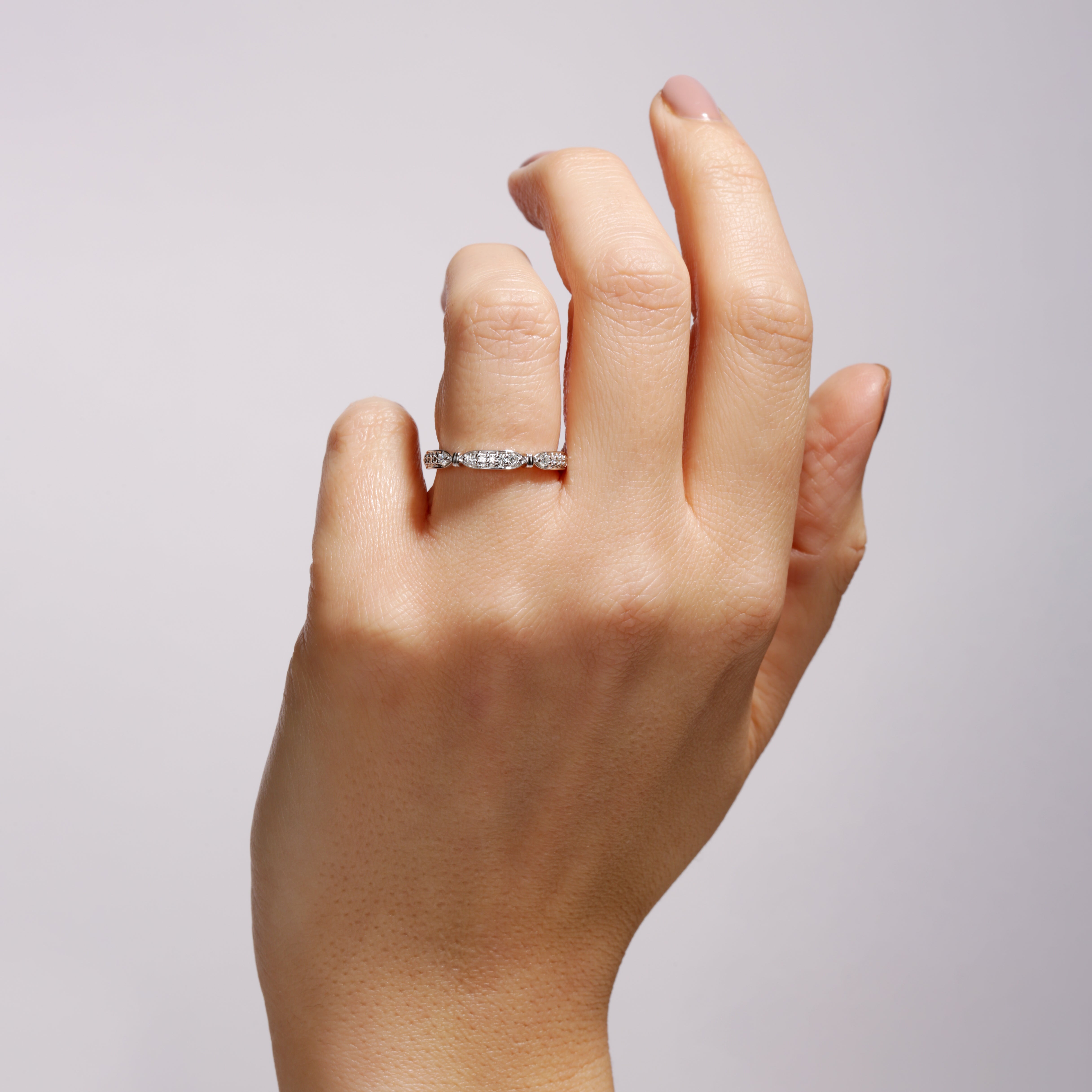Our Nova Band Ring is a dazzling celebration of eternal love. Crafted in 9ct solid white gold and adorned with a total of 0.20 carat of ethically sourced lab-grown round cut diamonds, this Eternity ring is the perfect choice for symbolizing your everlasting love and devotion. All lab grown diamonds on this piece are hand-selected and have a colour and clarity of F-G VS and come with IGI certificate.