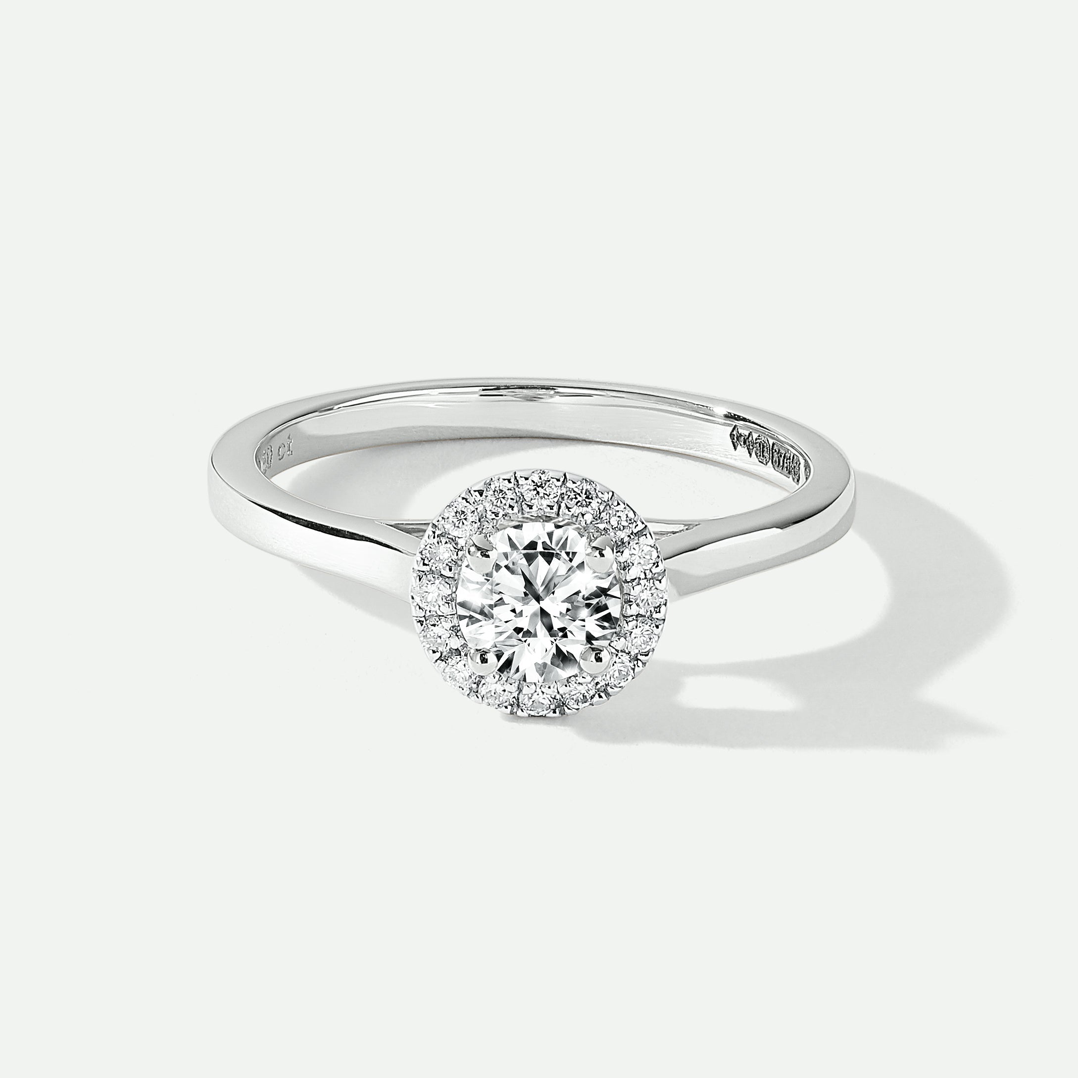 Our Ida ring is beautifully crafted in 9 carat white gold and set with a brilliant lab grown diamond centre stone framed by a halo of pavé set diamonds. Featuring our signature heart setting, this gorgeous engagement ring exudes romance.