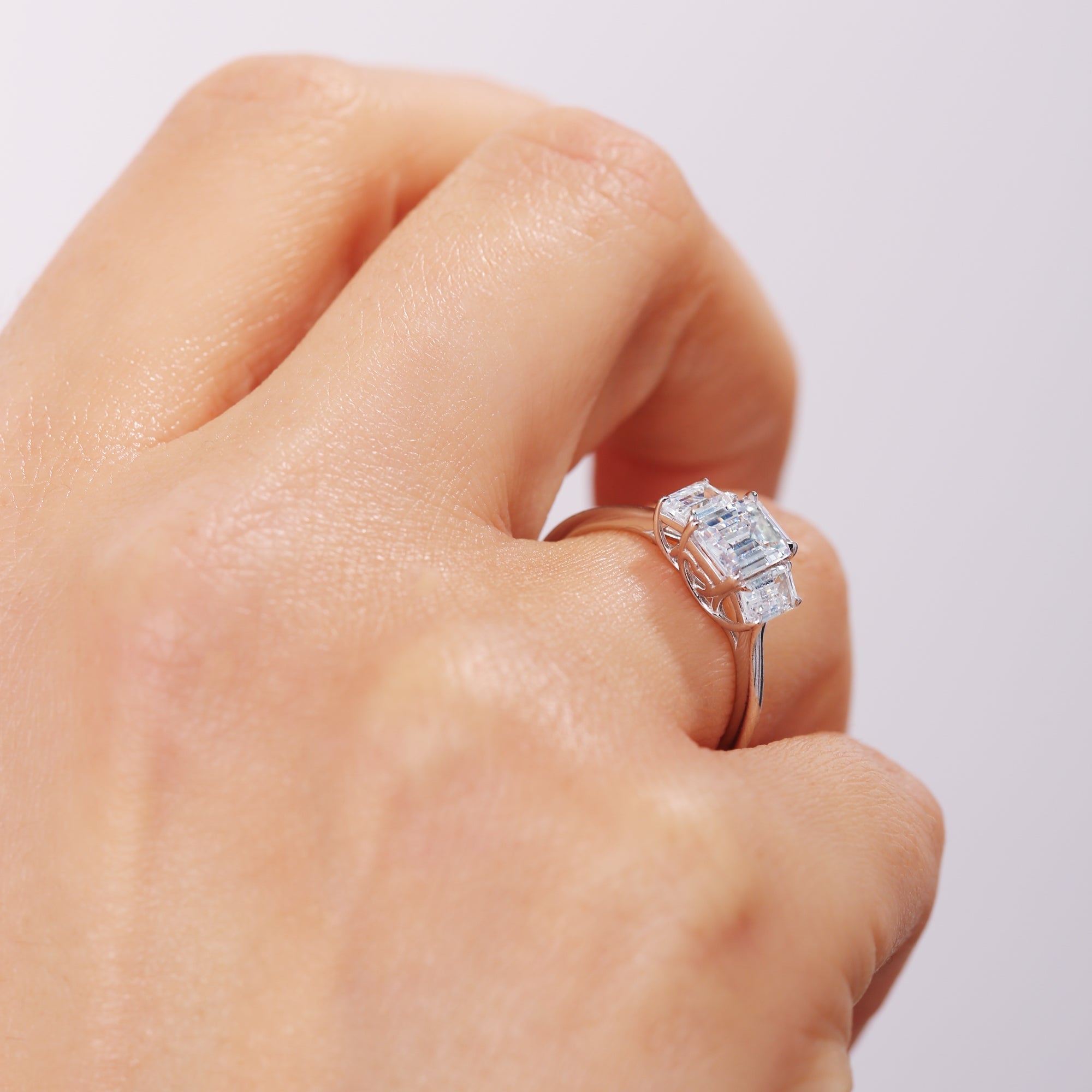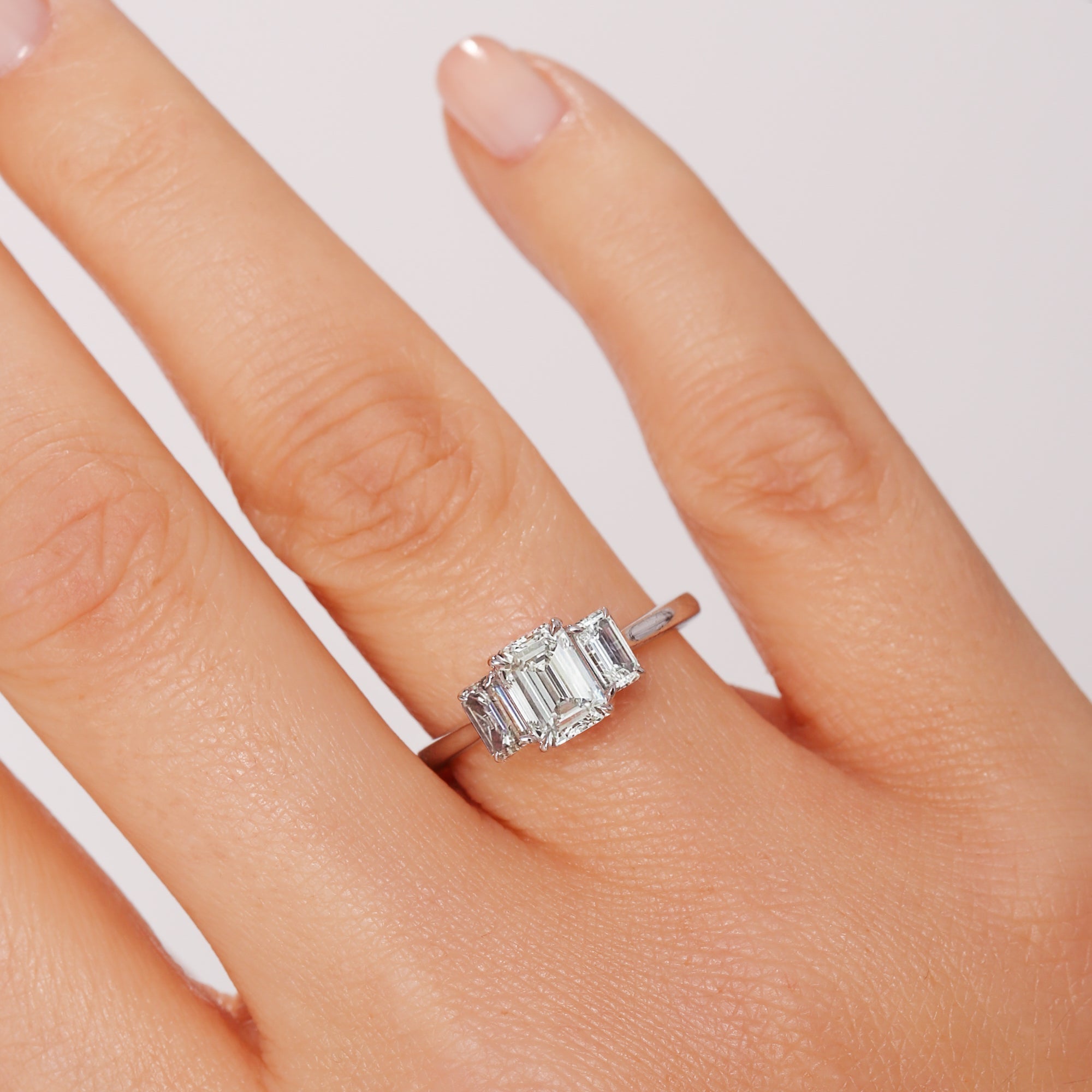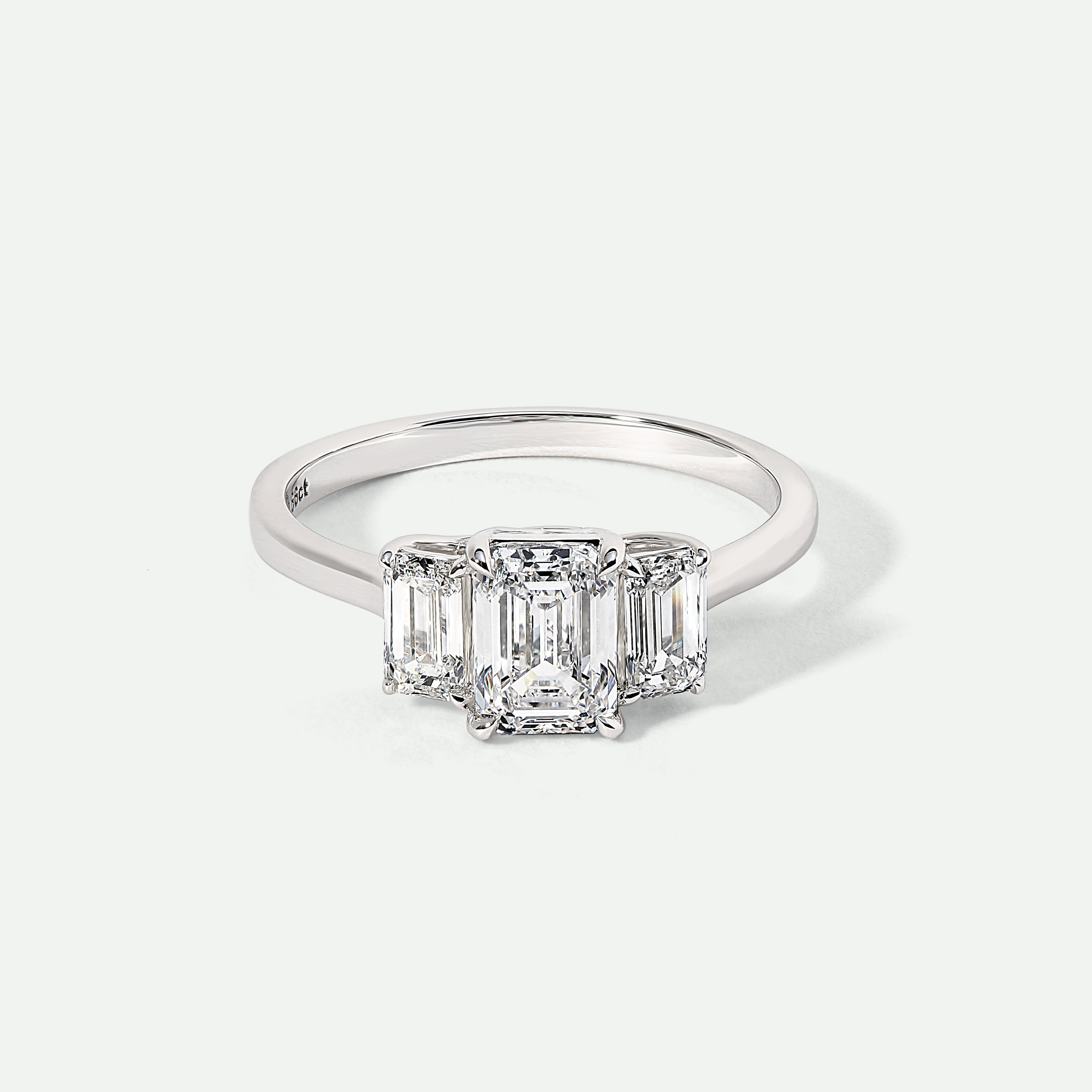 Murphy | 9ct White Gold 1.56ct tw Emerald Cut Lab Grown Diamond Three Stone Ring