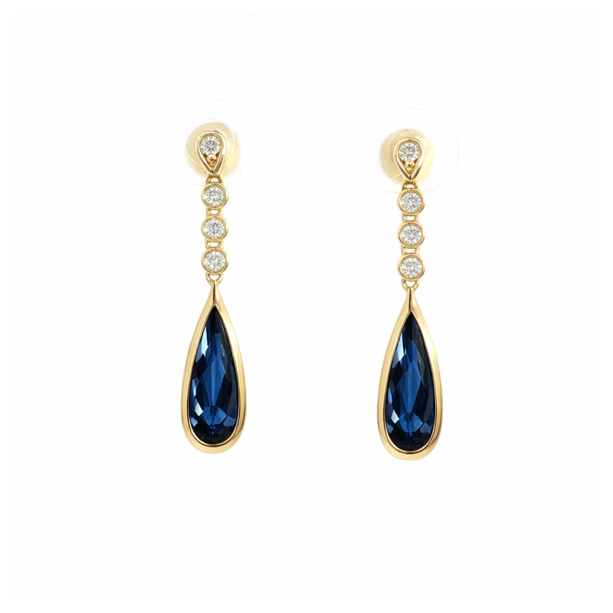 9ct Yellow Gold Pear Blue Topaz & Diamond Drop Earrings