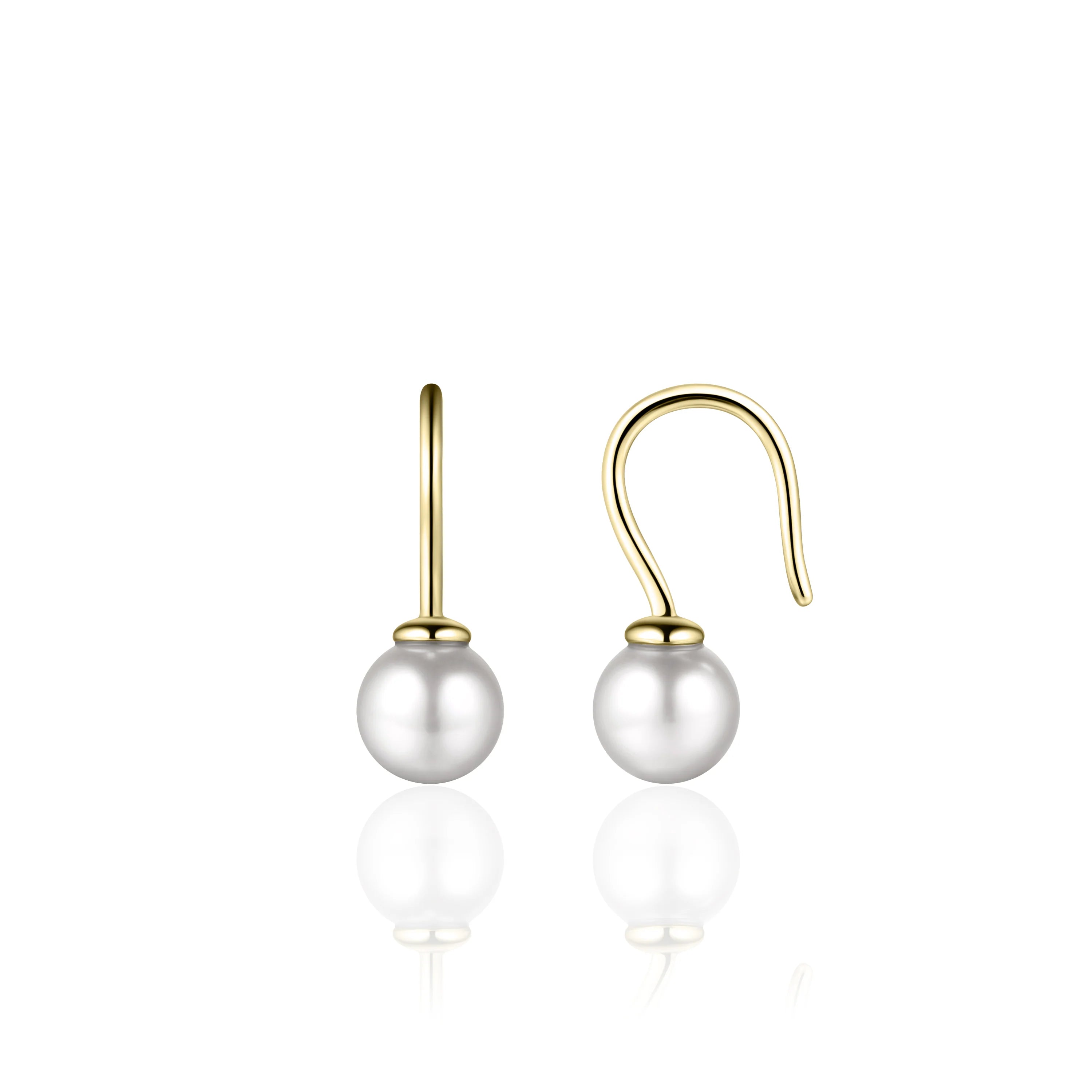 This exquisite pair of gold plated ear hooks are crafted with shimmering freshwater pearls, radiating a subtle luster and timeless elegance. These delicate accessories make an exquisite addition to any ensemble, adding a touch of refined sophistication.