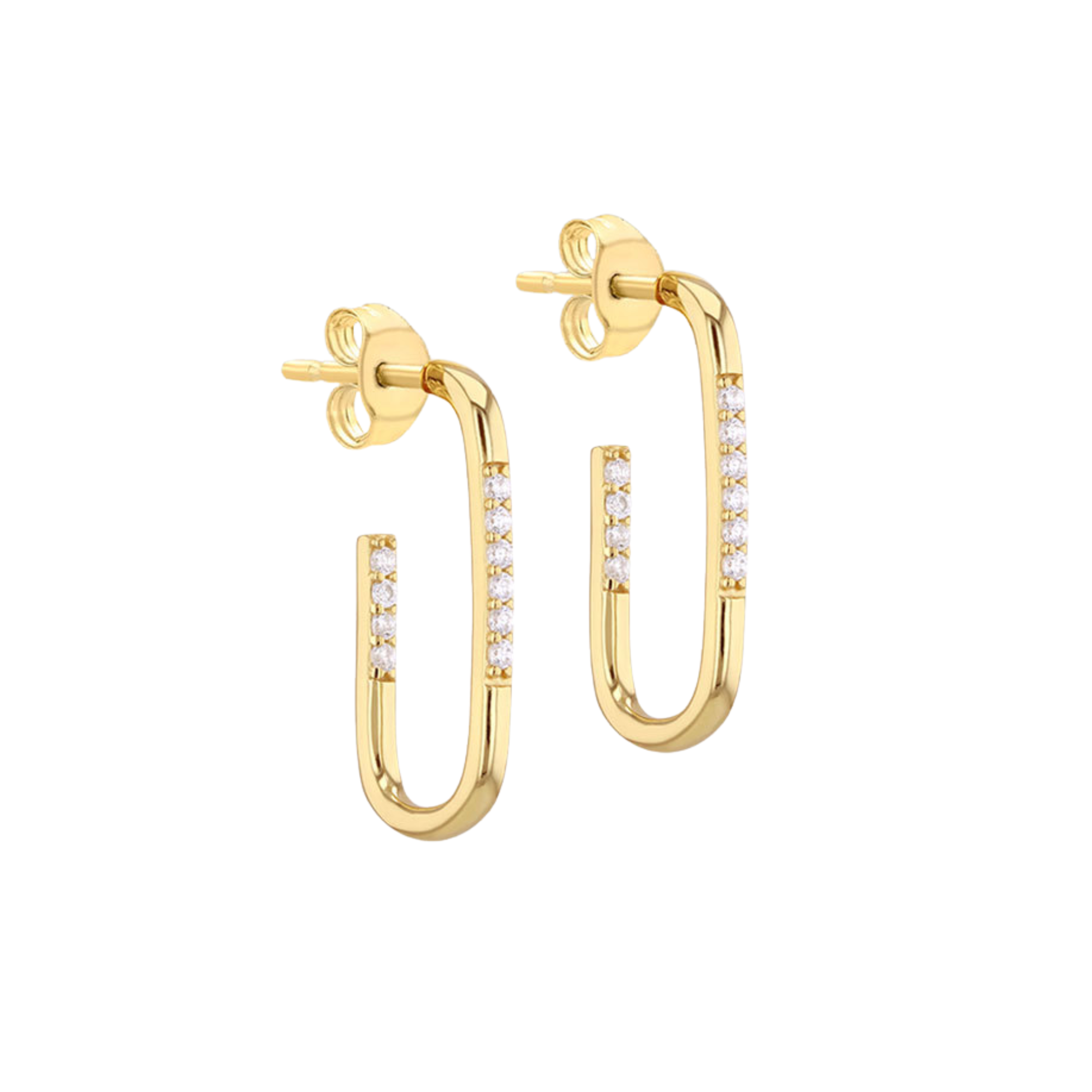 Gold Plated Silver CZ Rectangle Half Hoop Drop Earrings