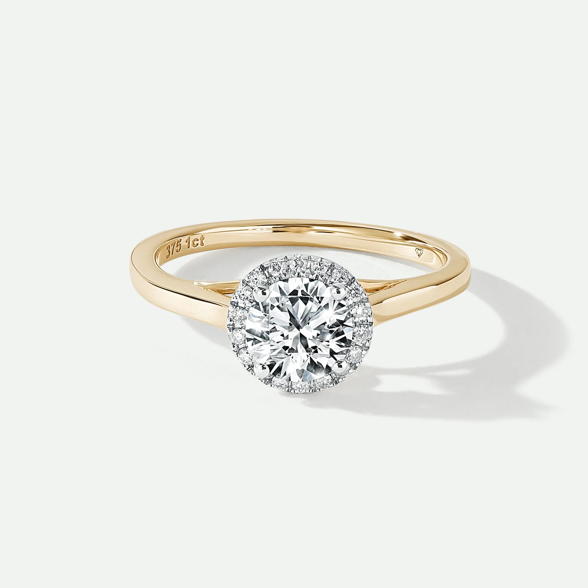 Our Ida ring is beautifully crafted in 18 carat yellow gold and set with a brilliant lab grown diamond centre stone framed by a halo of pavé set diamonds. This gorgeous design exudes romance with our unique heart setting, making it the perfect choice for a sparkling proposal.