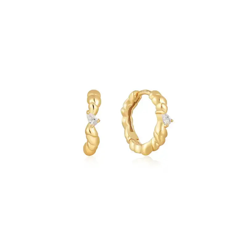 Ania Haie Gold Plated Silver Twist CZ Wave Huggie Hoop Earrings