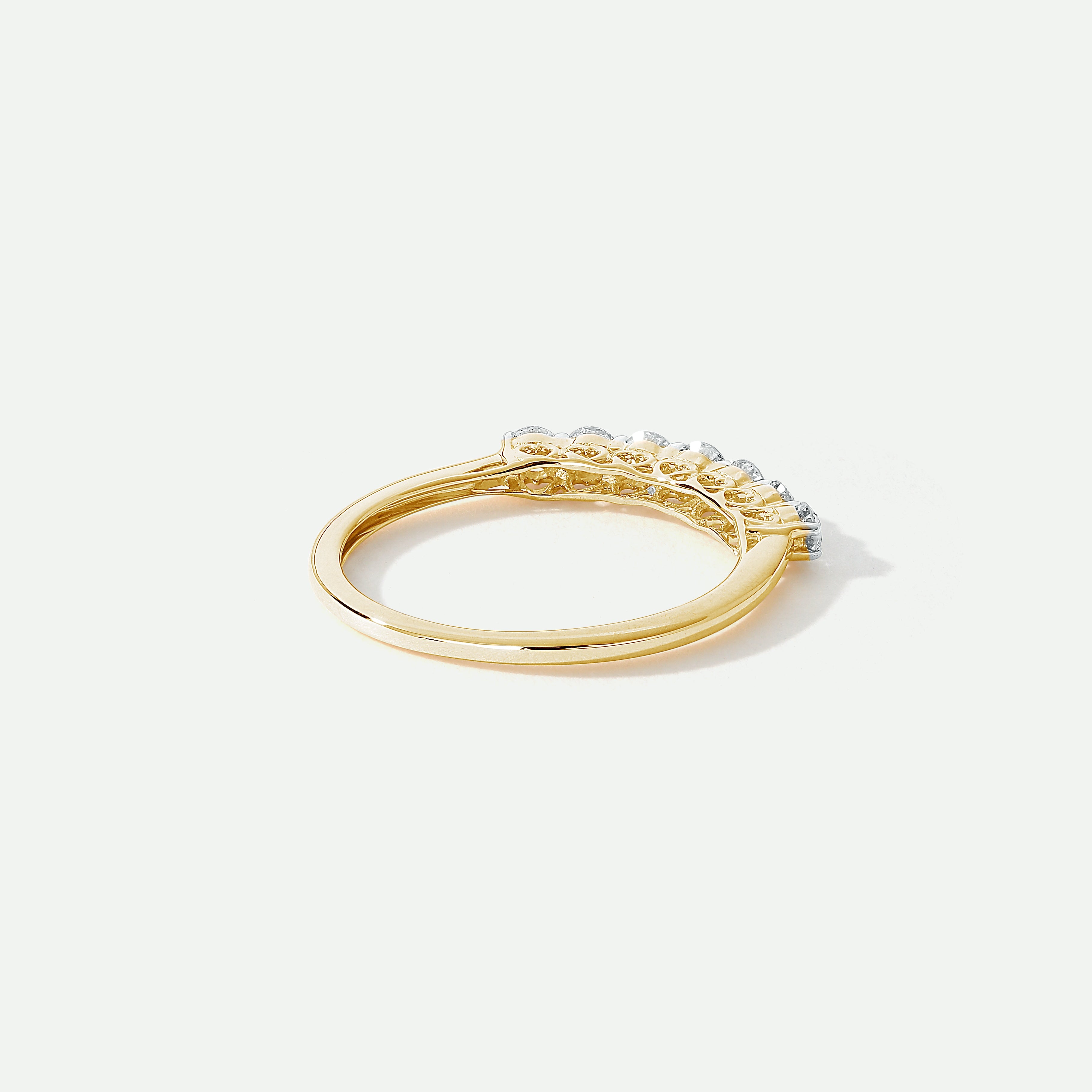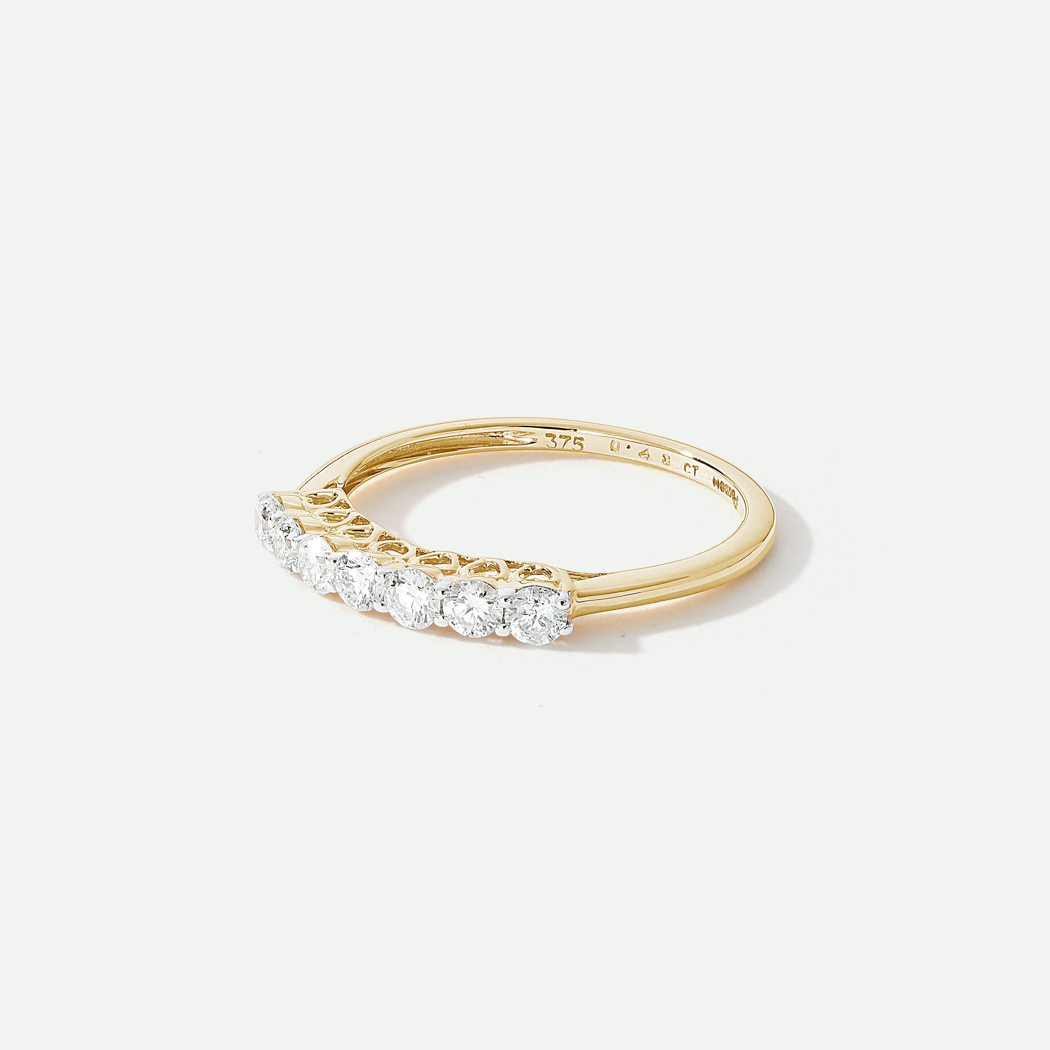 Our lab grown diamond Nora ring is exquisitely crafted in 9 carat yellow gold and embellished with 7 brilliant lab grown diamonds in a unique heart setting. This lovely piece is perfect worn alone or as a matching band to one of our engagement rings.