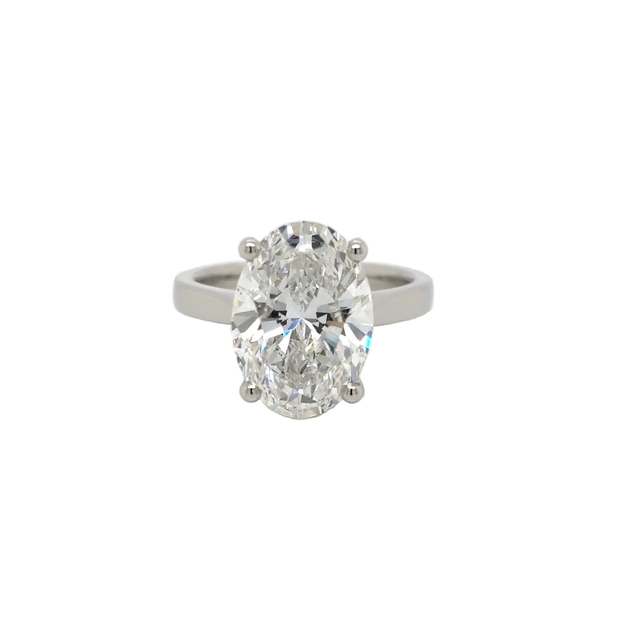 Make an unforgettable statement with this breathtaking 5.09 carat oval lab-grown diamond ring, beautfiully set in platinum.