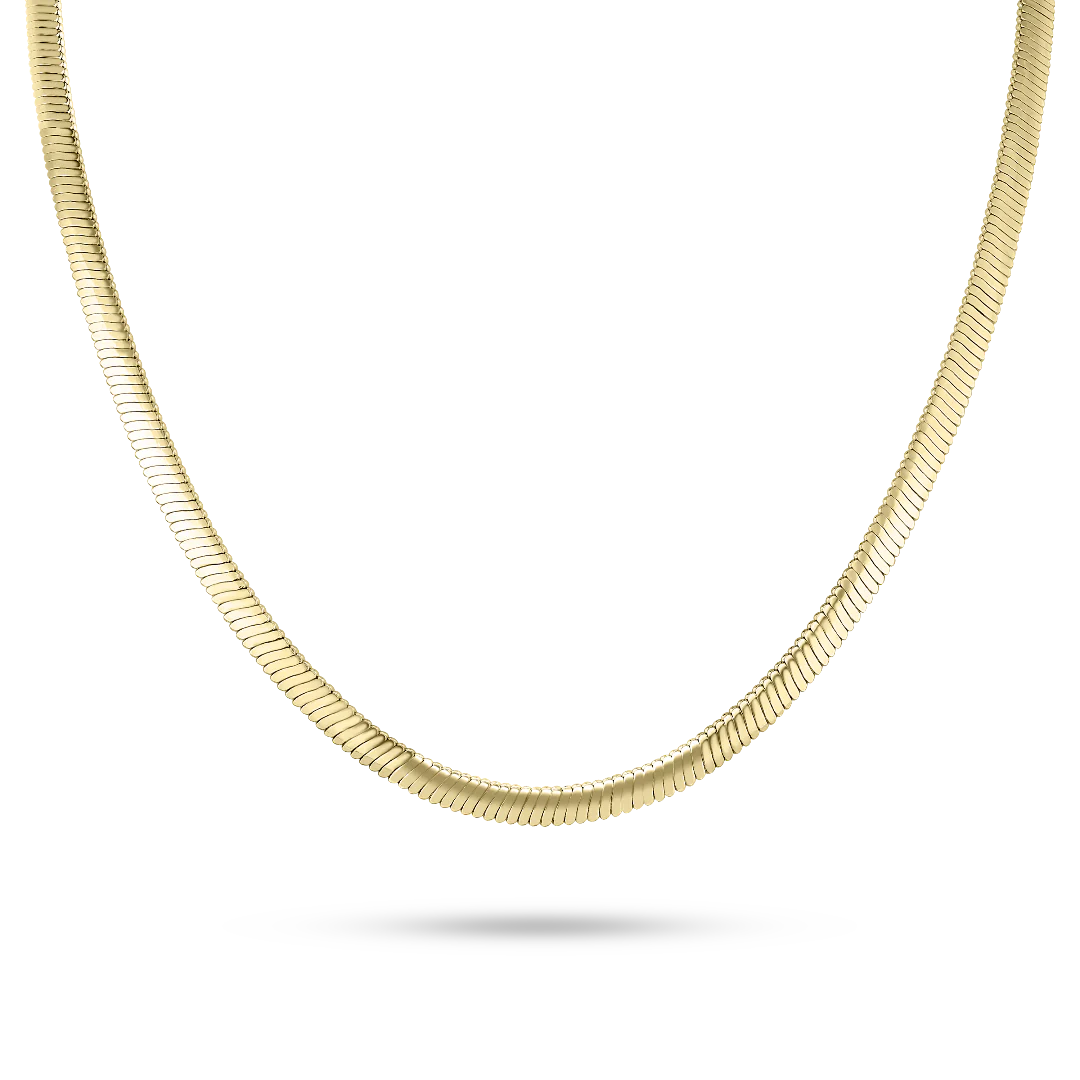 Get ready to make a statement! The Gold Plated Flat Snake necklace features a bold and fun flat snake chain, perfect for adding a unique touch to any festival outfit. Upgrade your accessory game with this must-have piece.