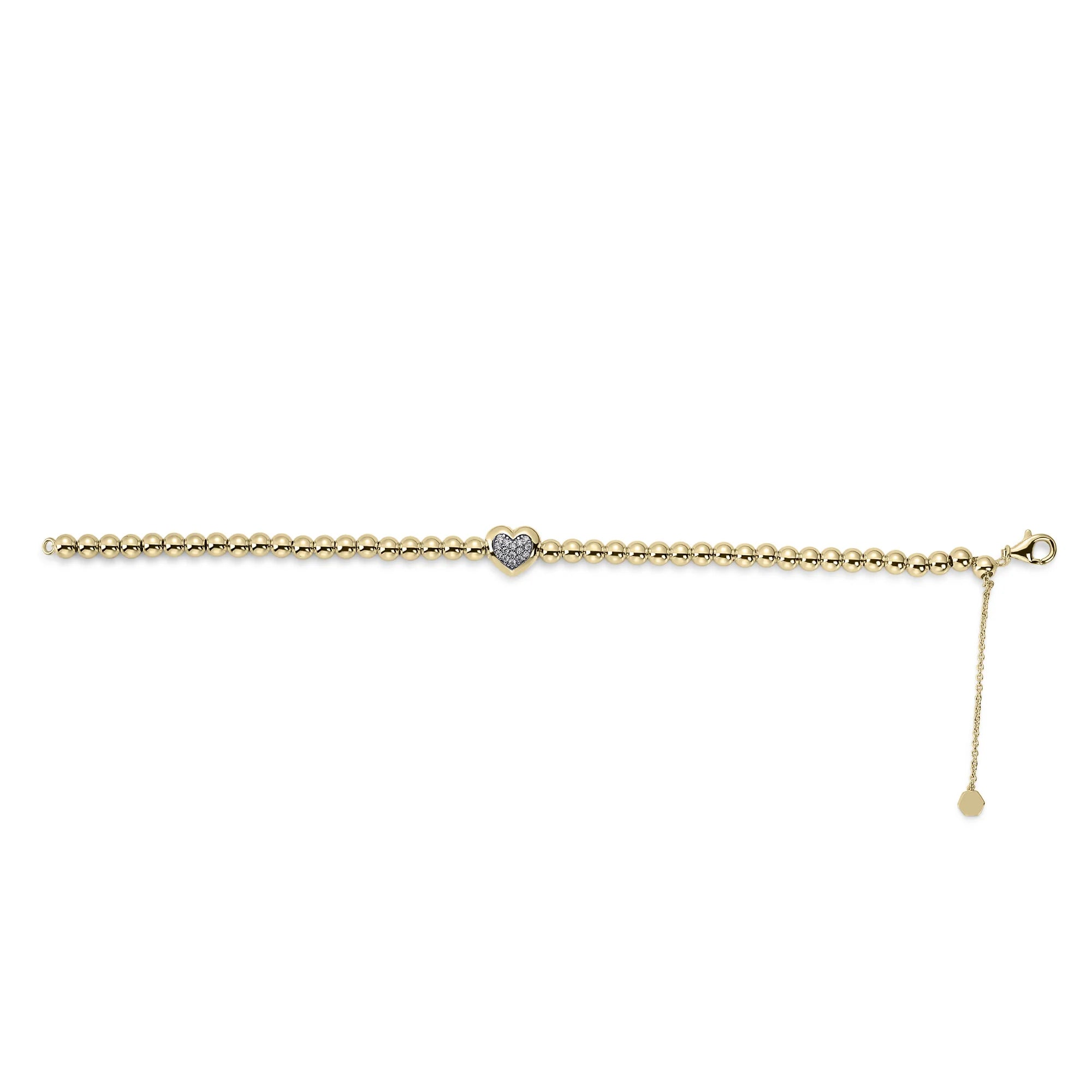 Elevate your jewelry collection with this stunning gold plated silver beaded bracelet, featuring a dazzling pavé heart charm that adds the perfect touch of sparkle. Crafted from high-quality sterling silver and finished with a gold plating, this bracelet boasts polished silver beads that create a sleek and elegant look, while the heart charm is encrusted with shimmering stones for a radiant finish.