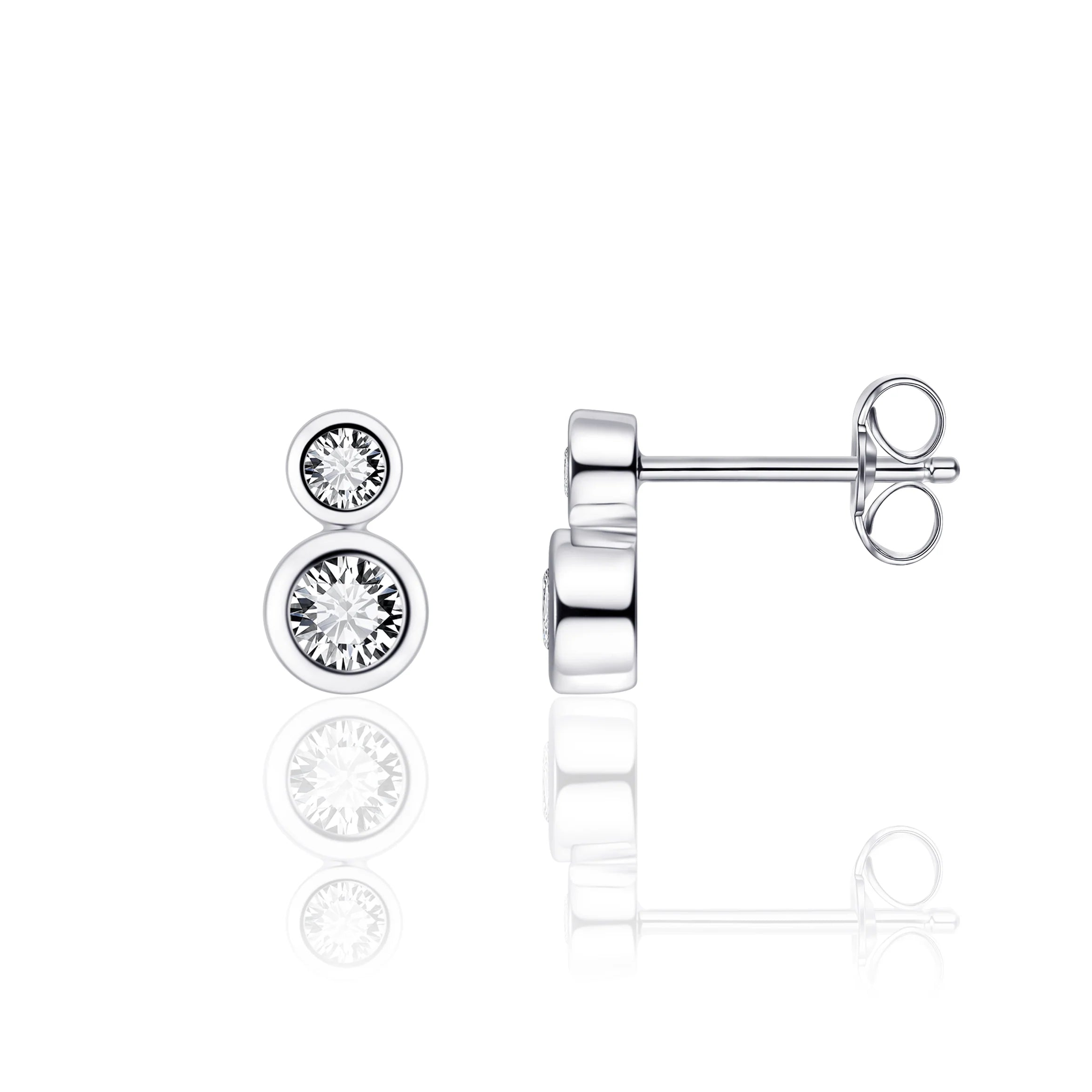 These ear studs are a timeless accessory for any ensemble. Crafted of rhodium plating and sparkling cubic zirconia stones for brilliant luster and detail, these studs offer a luxurious yet understated glamour for any casual or formal occasion. A must-have staple for any jewelry box.