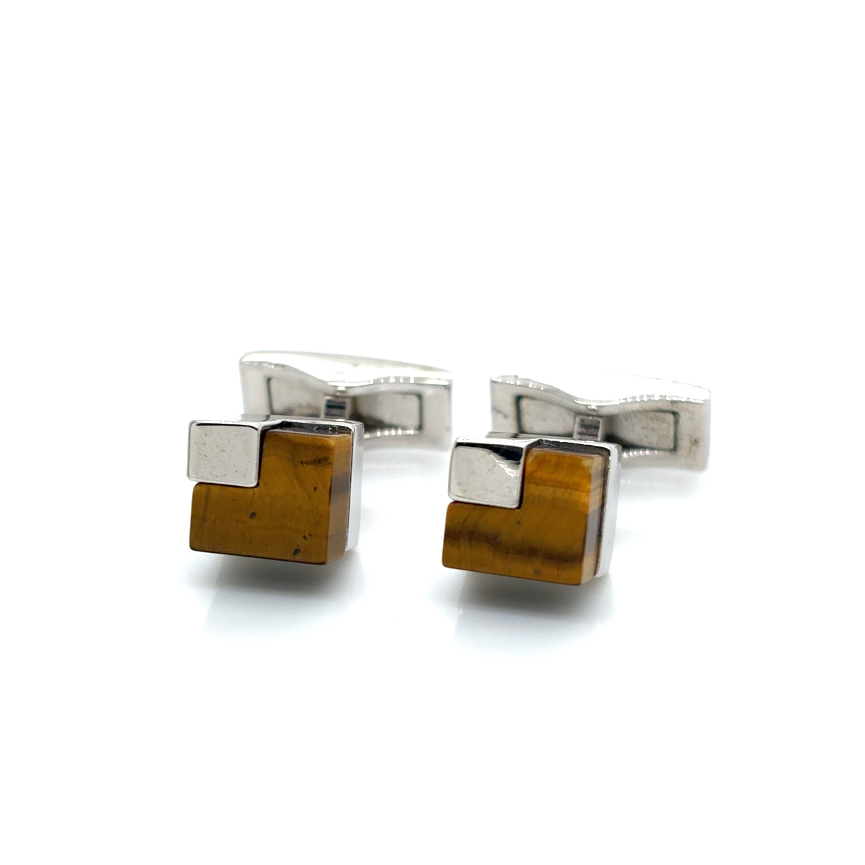 Tiger's Eye Cube Stainless Steel Cufflinks