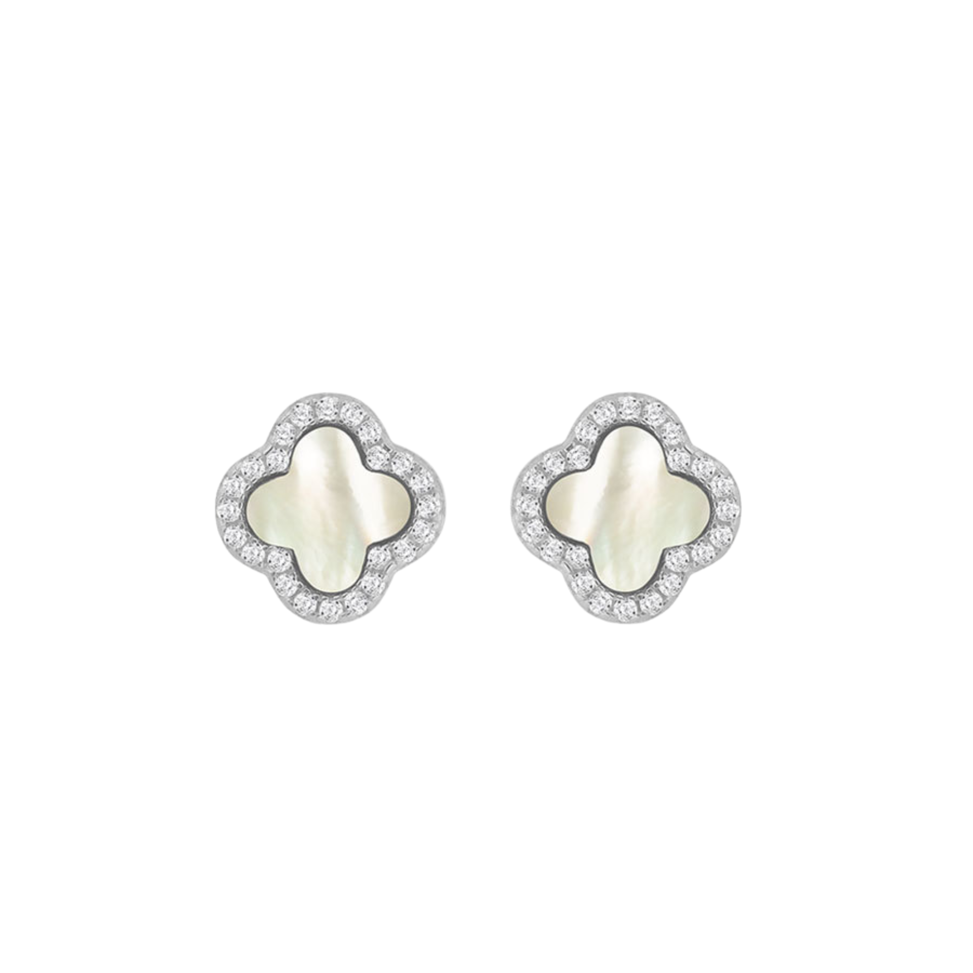 Bring a little bit of luck to your day with our Silver Mother of Pearl Clover Stud Earrings. These cute earrings feature a four-leaf clover design, each leaf filled with shiny mother of pearl that catches the light just right.