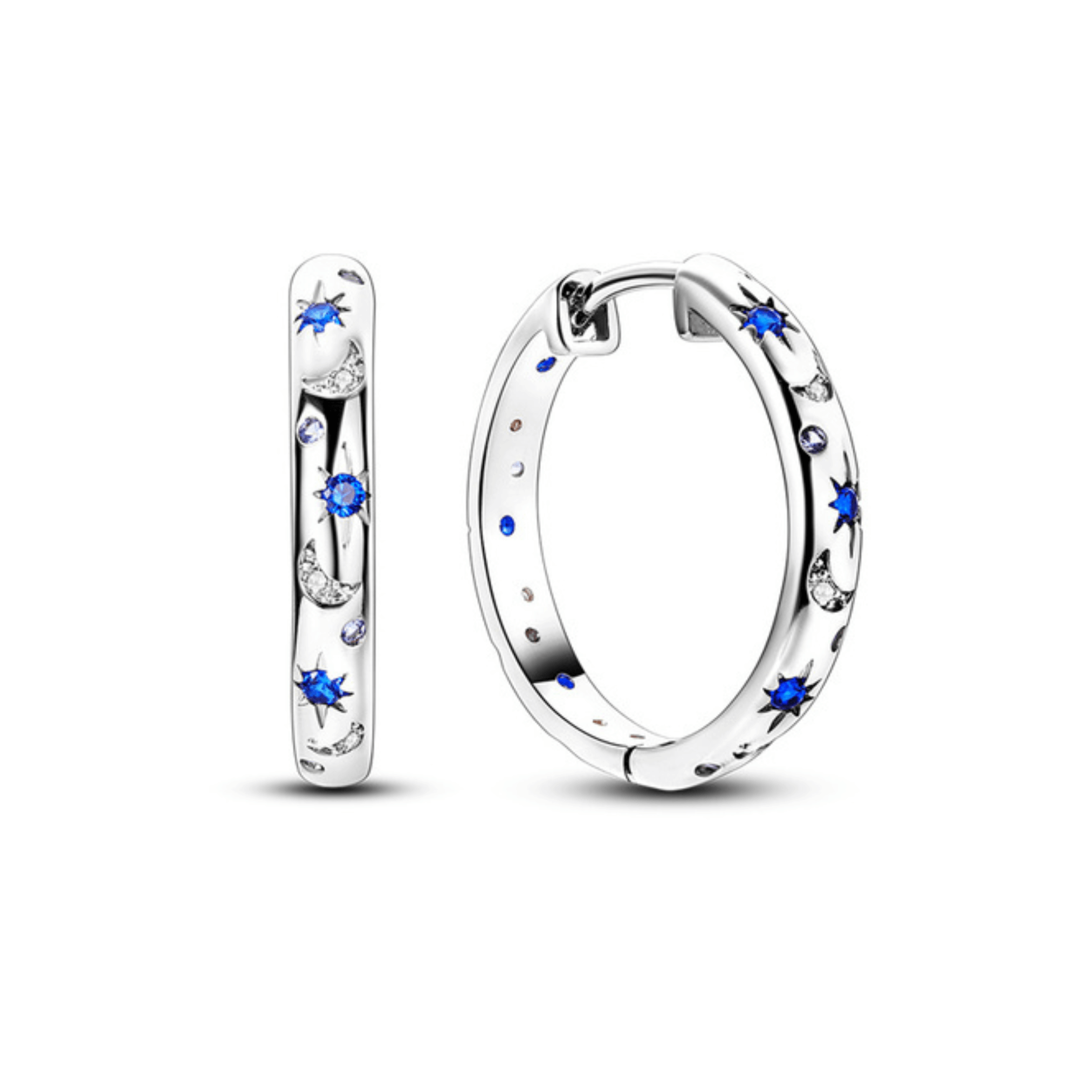 These Silver Blue and White Celestial Hoops are such a lovely pick if your usual hoops are starting to feel a bit plain and you want something with more mood. The polished silver band is dotted with deep blue star details, tiny white stones and little crescent moons, so you get that night sky feel in a way that still feels easy to wear. Cute, yes, but not over the top. They bring in a pop of colour, catch the light nicely, and make even a really simple outfit feel more put together without you having to think too hard about it.