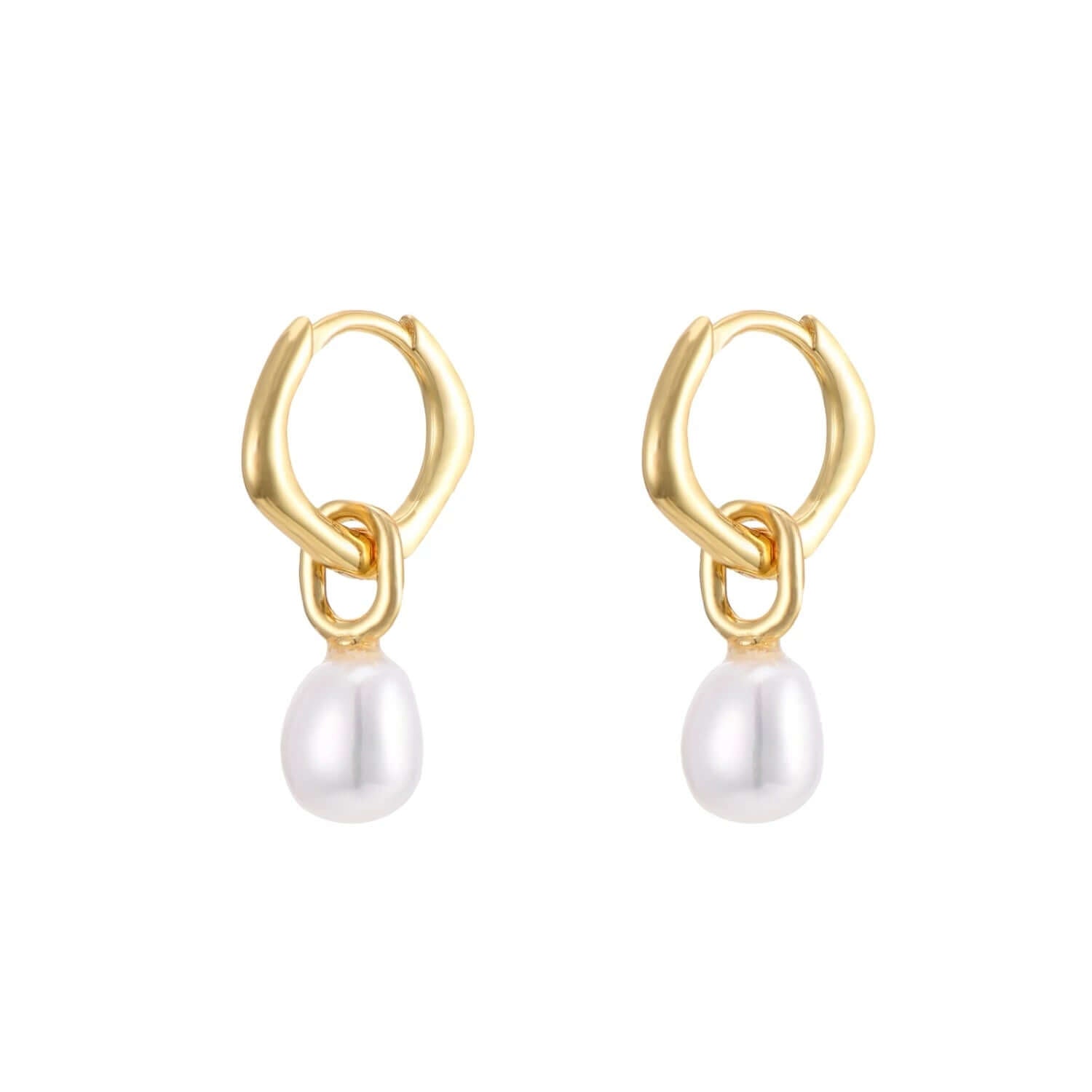 Gold Plated Silver Pearl Link Drop Hoop Earrings
