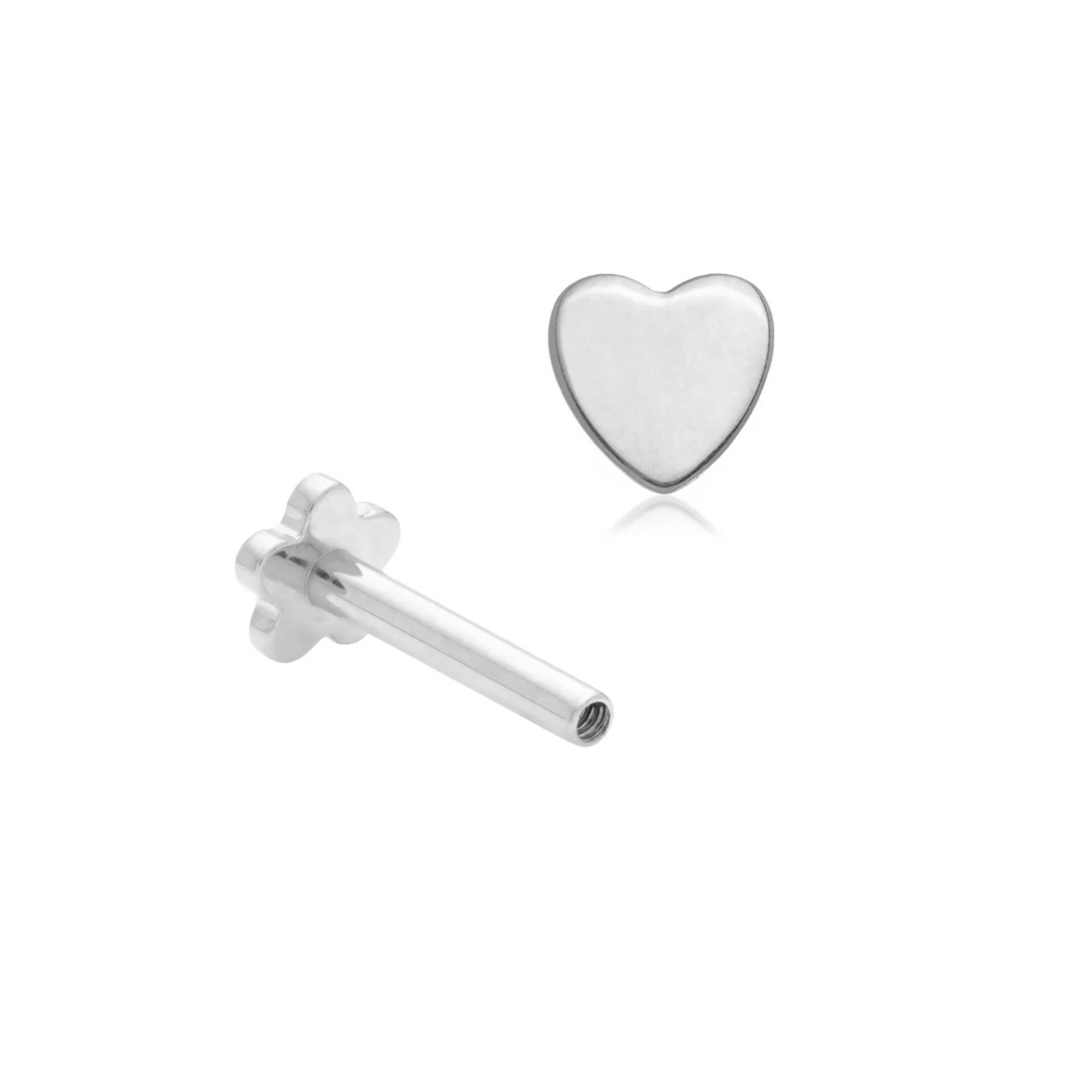 14ct White Gold Heart Internal Thread Flat Back Stud