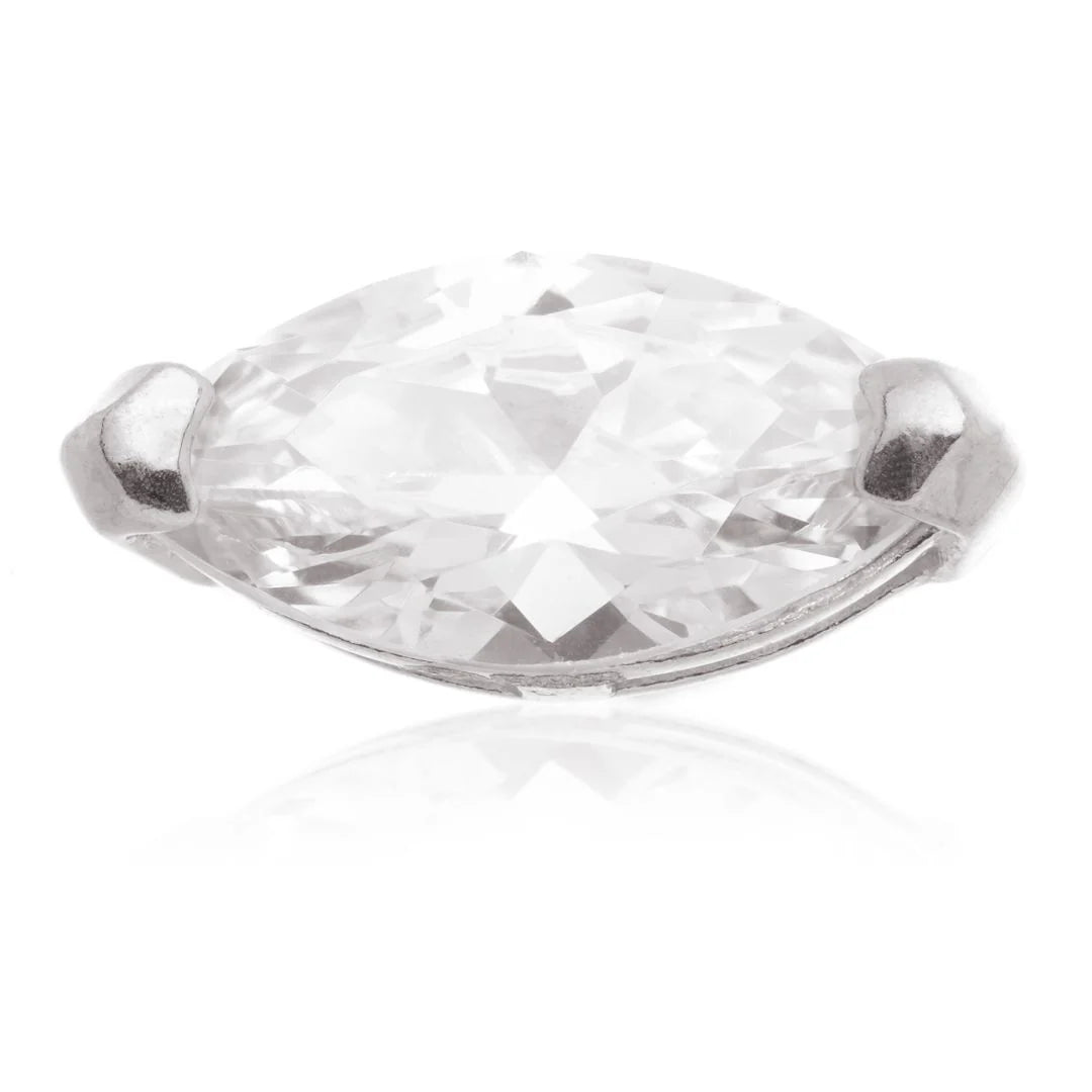 14ct White Gold Marquise Internal Thread Flat Back Stud
