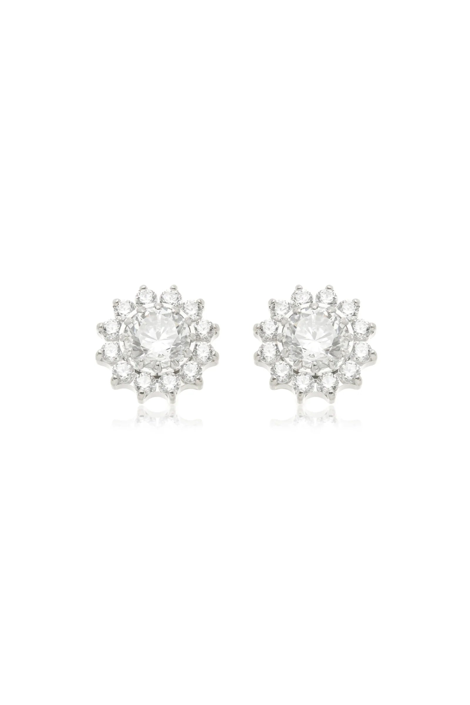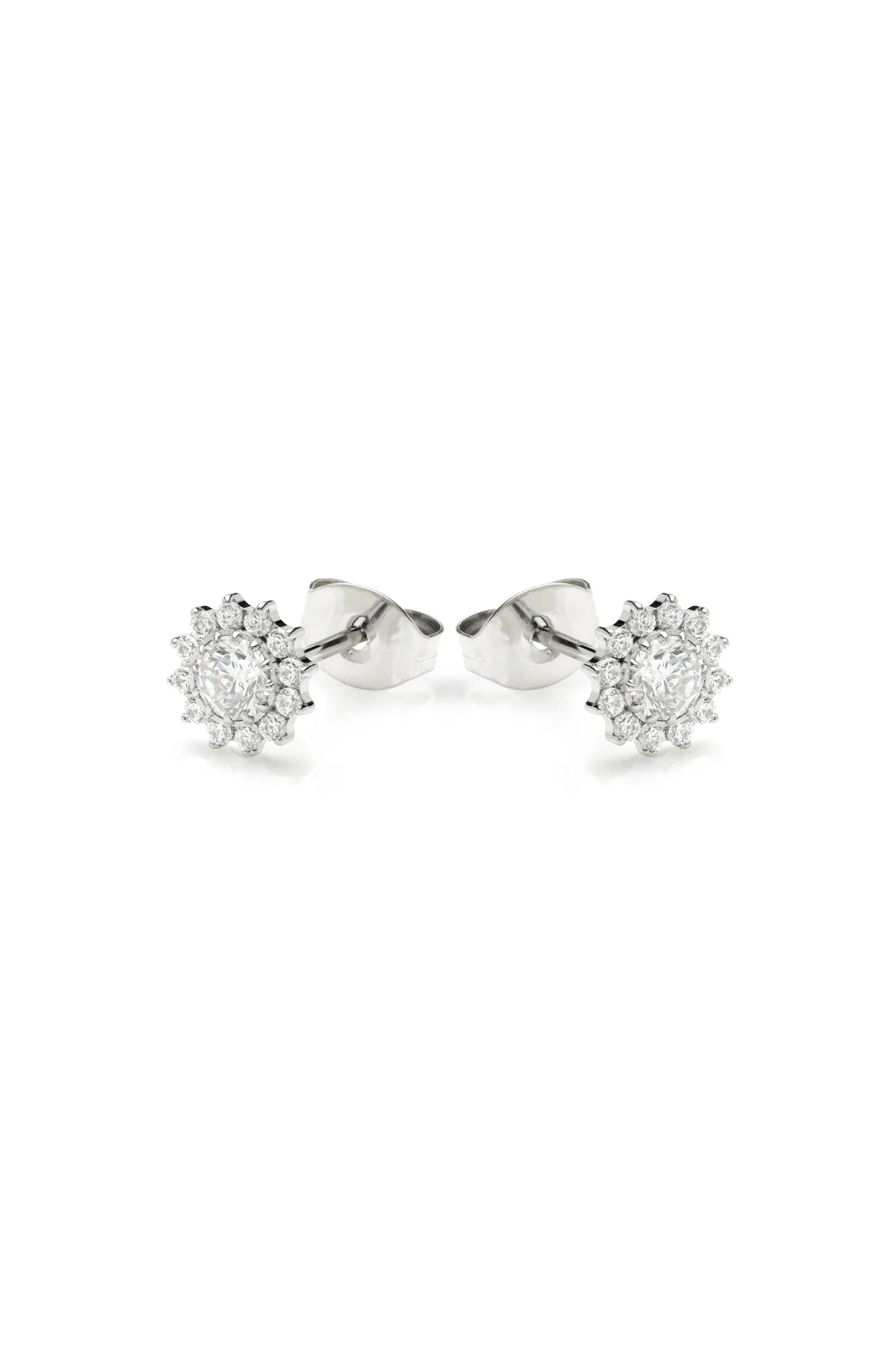 Platinum Titanium Jewelled Flower Stud Earrings (Pair)