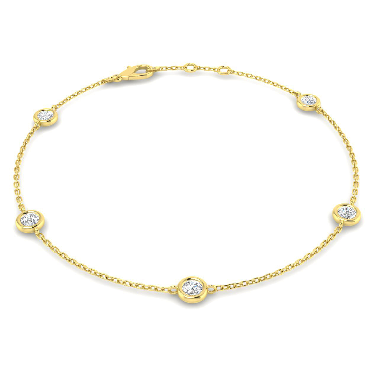Crafted from 9ct yellow gold, this bracelet showcases five lab-grown diamonds, each expertly rubover set to highlight their brilliance. The delicate "by the yard" style creates a subtle yet luxurious sparkle, making it a must have addition to any jewellery collection.