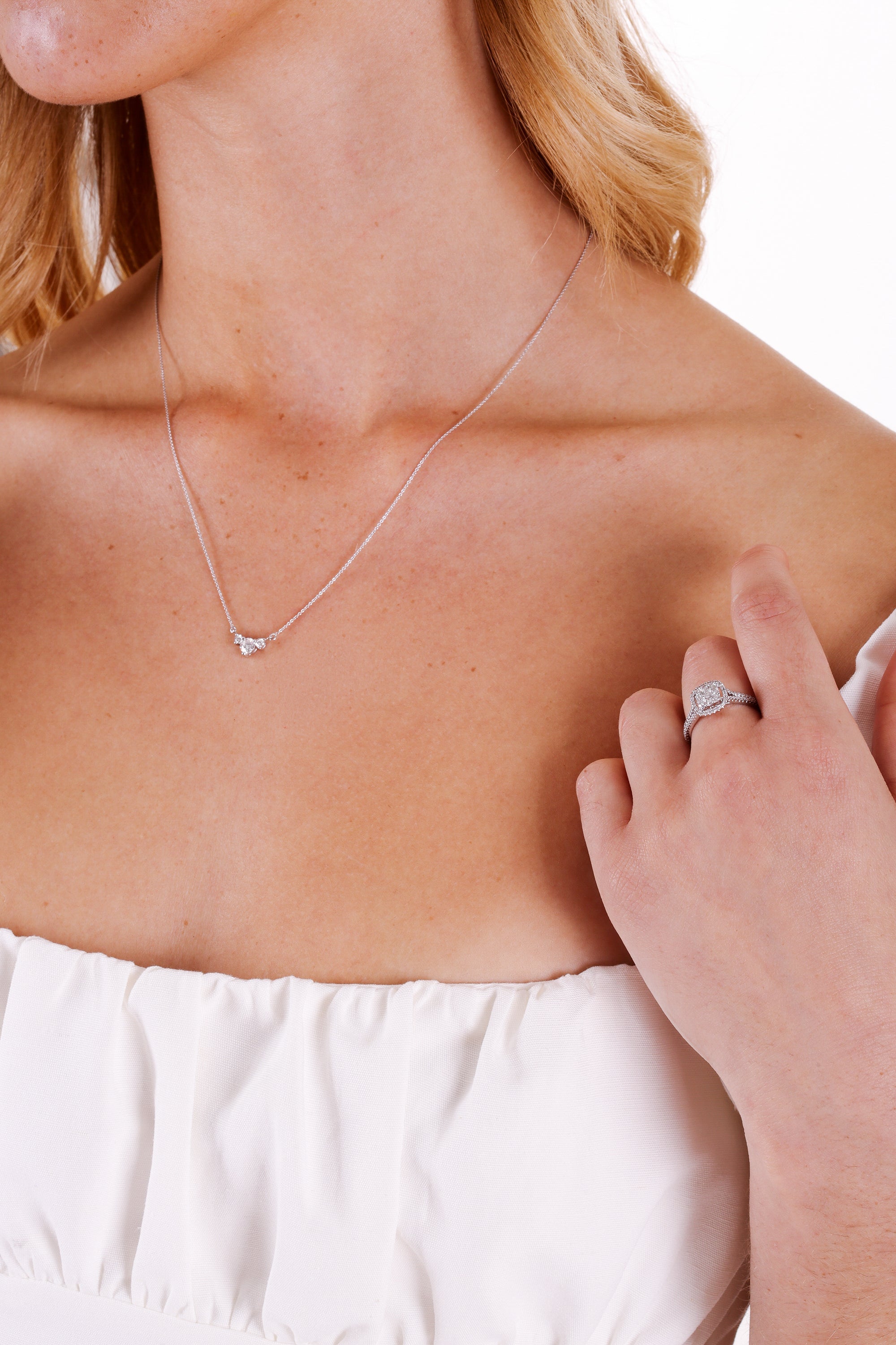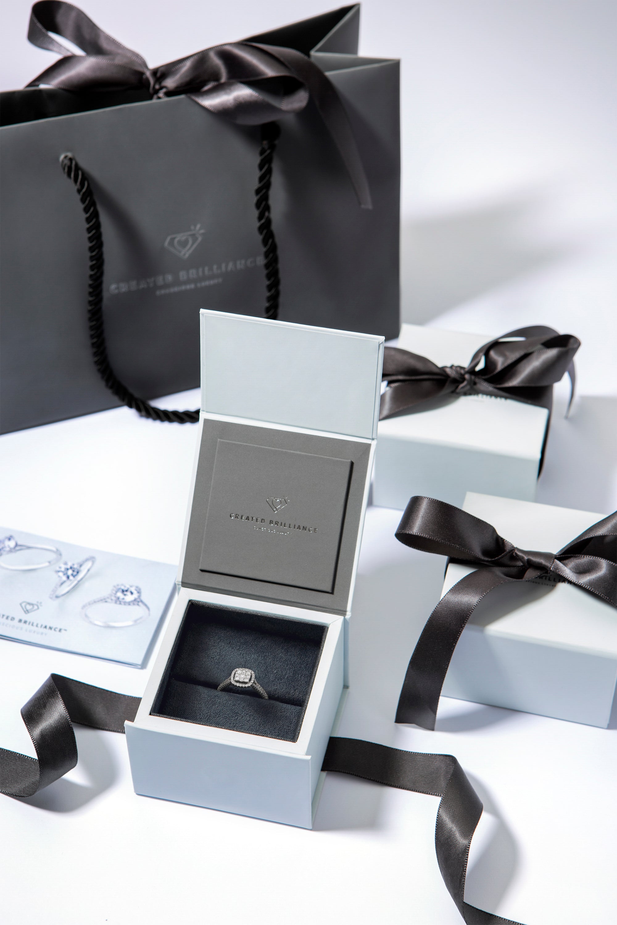 Our Gemma ring is expertly crafted in 9 carat white gold and set with a cluster of brilliant lab grown diamonds. Framed by a halo of pavé set diamonds, this luxurious engagement ring has a total diamond weight of 0.52ct. Embellished with diamond set spilt shoulders for maximum sparkle, the Gemma ring is a wonderful way to express your love.